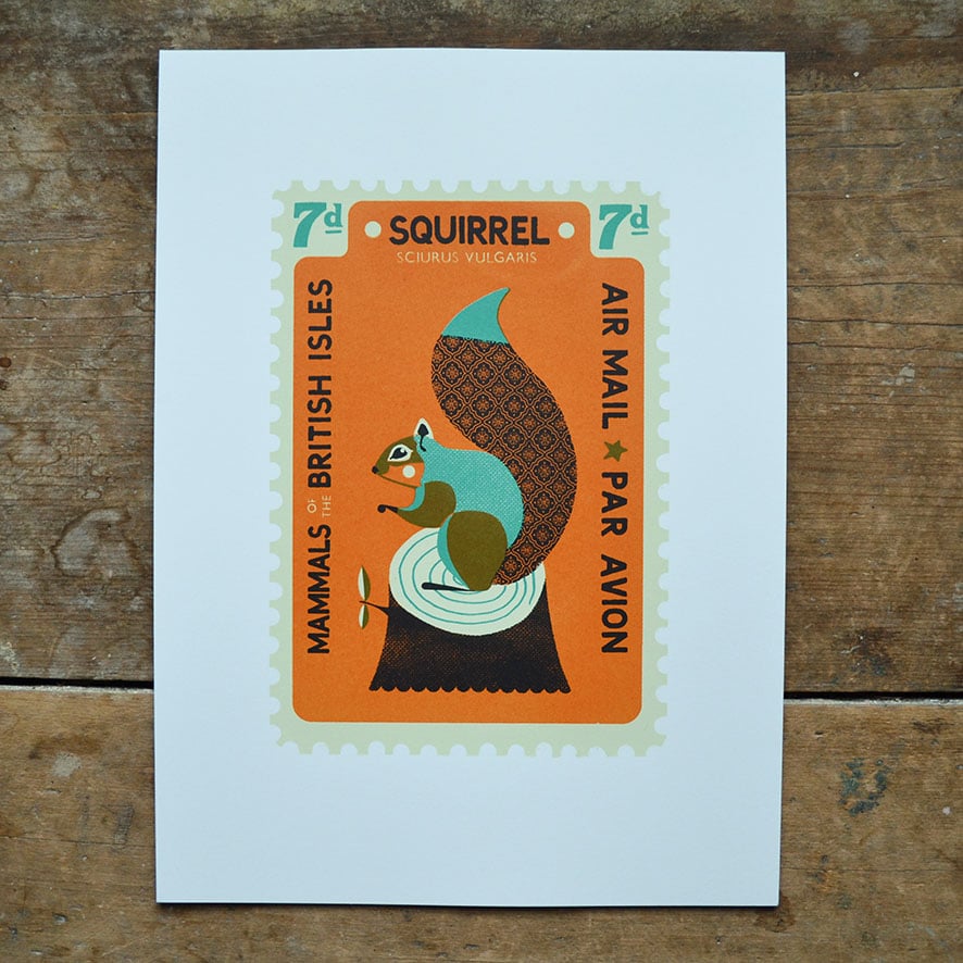 Birds and animals of the British Isles. In stamp form. What more could you ask for? Four hand screen printed colours on Mohawk paper.