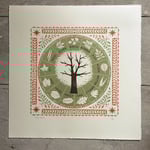 A print based on an illustration I was asked to do for Leaf! the Woodland Trusts seasonal newspaper. Hand screen printed in three colours on sumptuous creamy Somerset Buff 250gsm paper.
